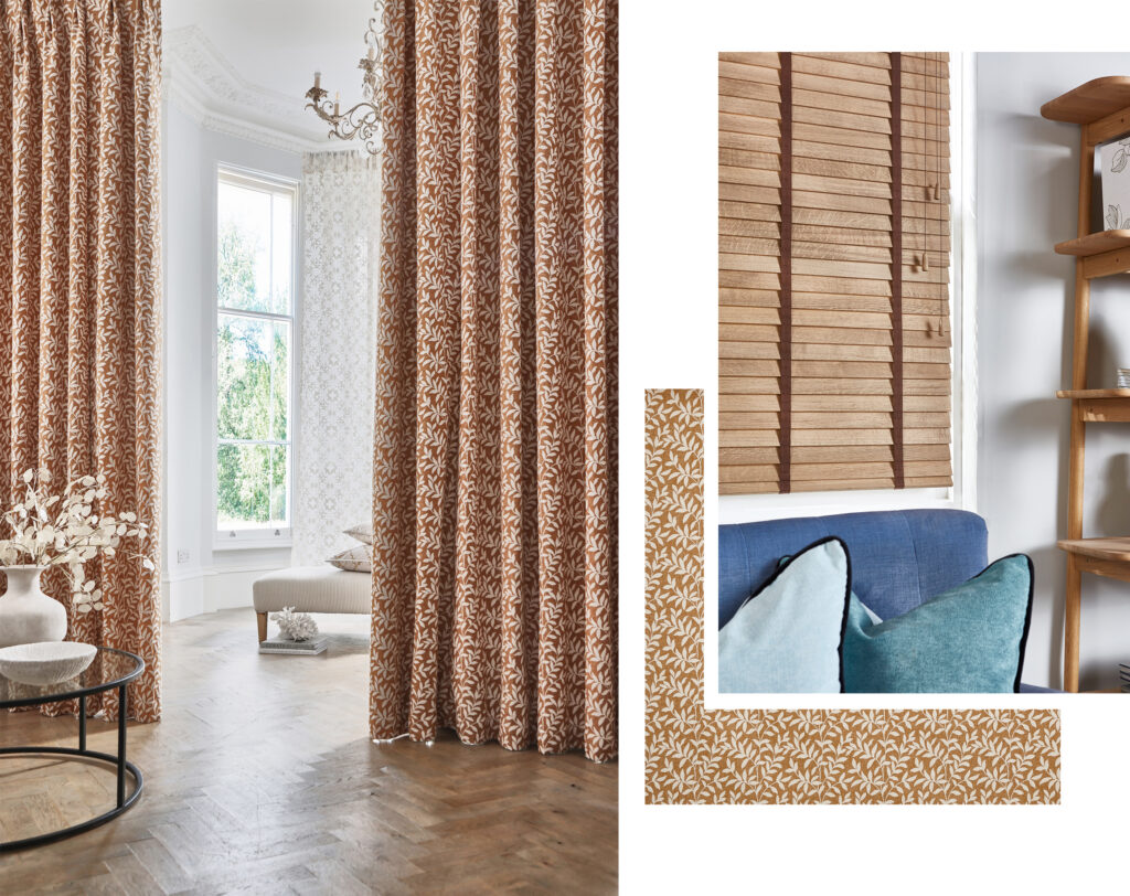 When pairing curtains with your blind, make sure they truly showcase your blind. Ensure they are also effective at keeping the heat in, or out. Opt for curtains that hang from above your window recess and are placed closely alongside your blind. This seals any gaps between the blind and window. Longer curtains will also create the perception of a larger room.